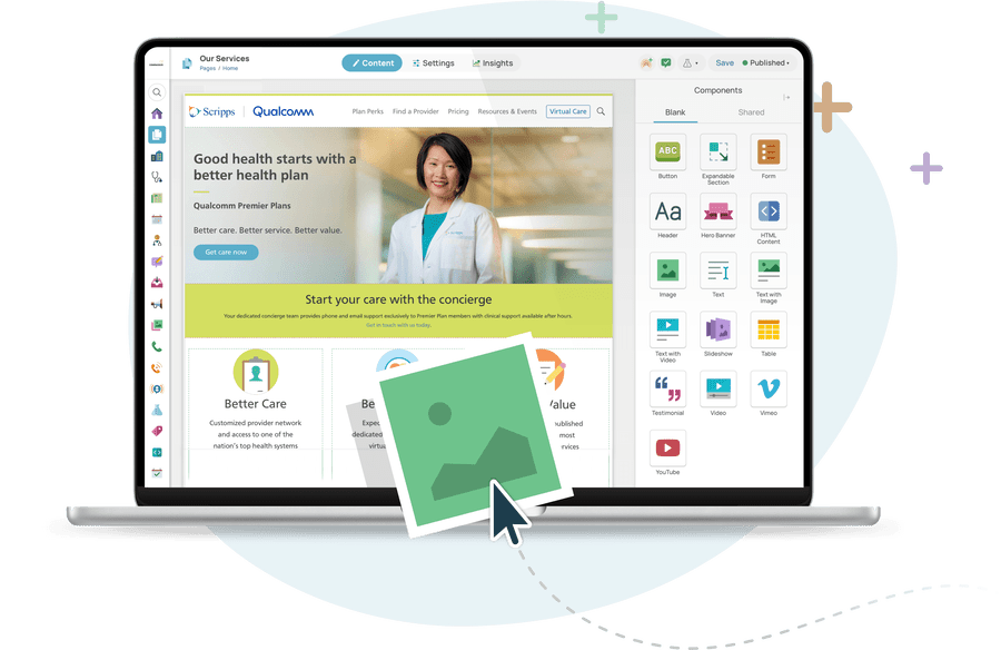 Build engaging, reusable forms to capture leads with drag and drop form fields, labels and buttons. Validation & HIPAA compliance built in.